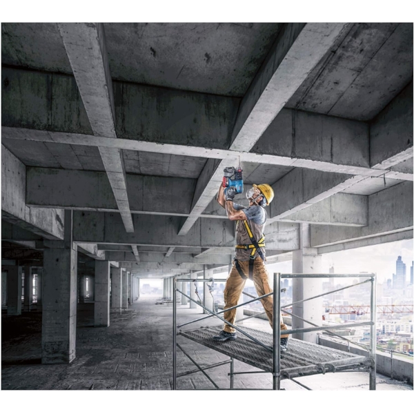 - The Bosch Professional cordless rotary hammer GBH 18 V – 20 with 18 V and 20 mm drilling performance in concrete